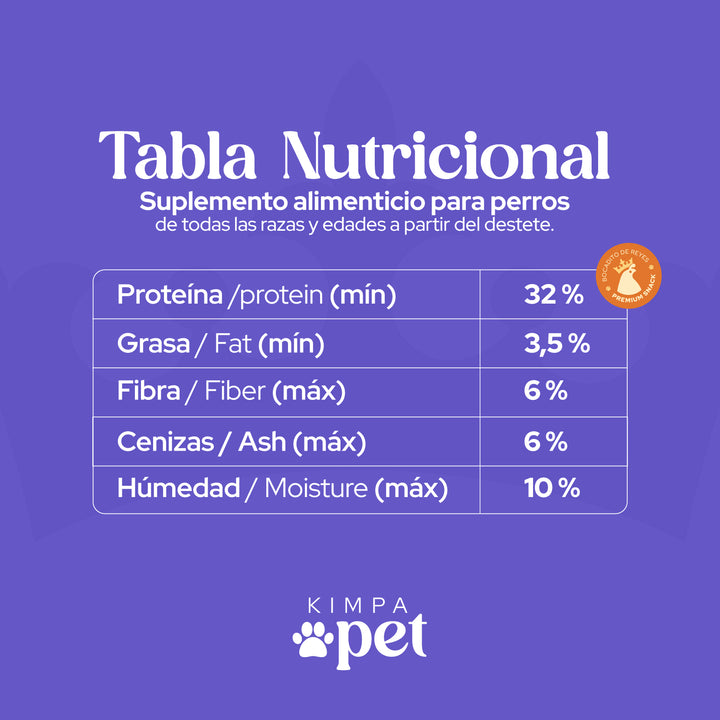No. En Kimpa trabajamos con ingredientes naturales y procesos artesanales. No usamos colorantes, saborizantes ni conservantes artificiales. Queremos que cada snack sea tan puro y saludable como el vínculo que compartes con tu mascota.