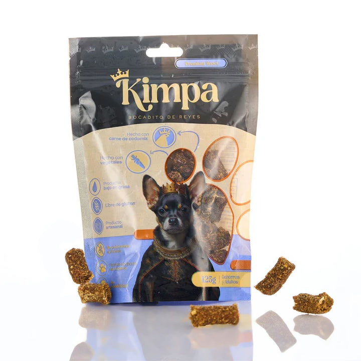 Nuestros snacks están elaborados artesanalmente con carne de codorniz y vegetales, ingredientes funcionales y respaldo veterinario. No solo son deliciosos, también aportan nutrición, seguridad y bienestar en cada bocado. Kimpa busca fortalecer el vínculo entre las personas y sus mascotas desde la ciencia y el amor.